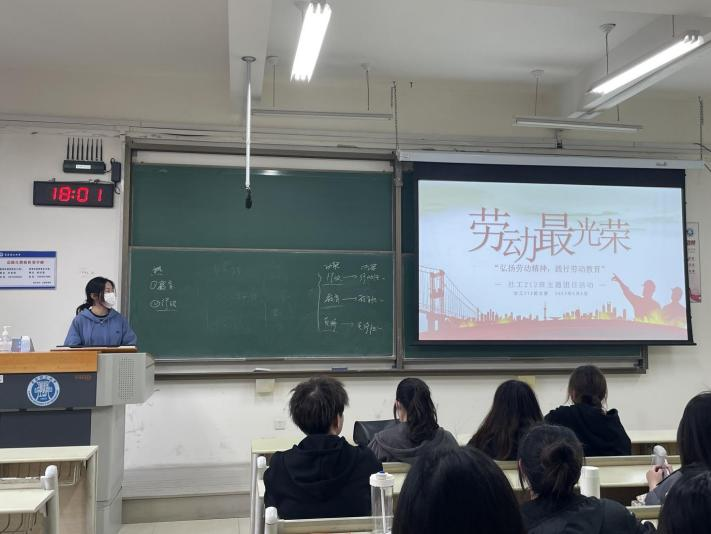 发挥基层团组织活力,以团支部为单位开展了系列劳动教育活动。各团支部结合新时代大学生思想实际,集中开展劳模人物的事迹宣讲,有守正创新传承民族公益的全国劳模任金素,使命在肩不惧挑战的四度飞天第一人景海鹏,倾力扶贫舍身忘我的时代楷模黄文秀……,使学生深刻地了解到习近平总书记对青年的期望和对劳模精神培养的重视,体会新时代劳动精神的实质内涵。