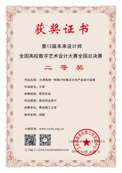 11月16日,第12届未来设计师·全国高校数字艺术设计大赛(NCDA)颁奖典礼在重庆举行。yl1111永利集团艺术与设计学院学生在竞赛中取得优异成绩,斩获全国一等奖2项,二等奖3项,三等奖5项;山东赛区一等奖13项,二等奖16项,三等奖20项。